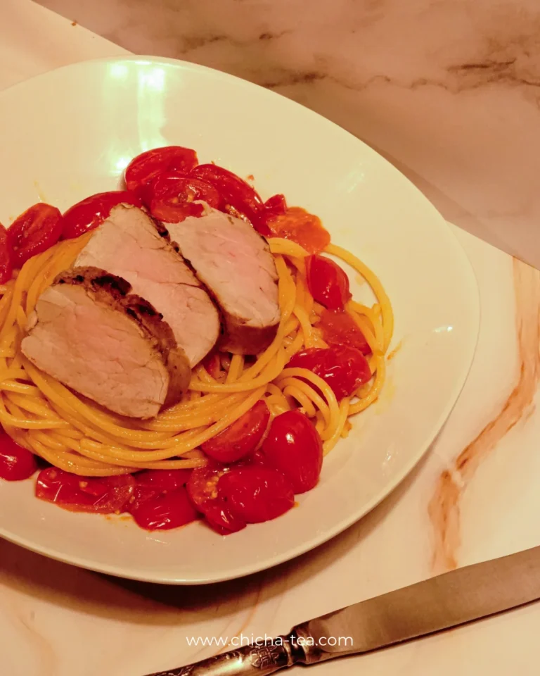 Zutaten für 4 Personen 1 Bio-Limette 800 g Schweinefilet 2 EL ChiCha Qimen Fleur de Sel Weißer Pfeffer 200g Kirschtomaten 3 EL Olivenöl Spaghetti oder